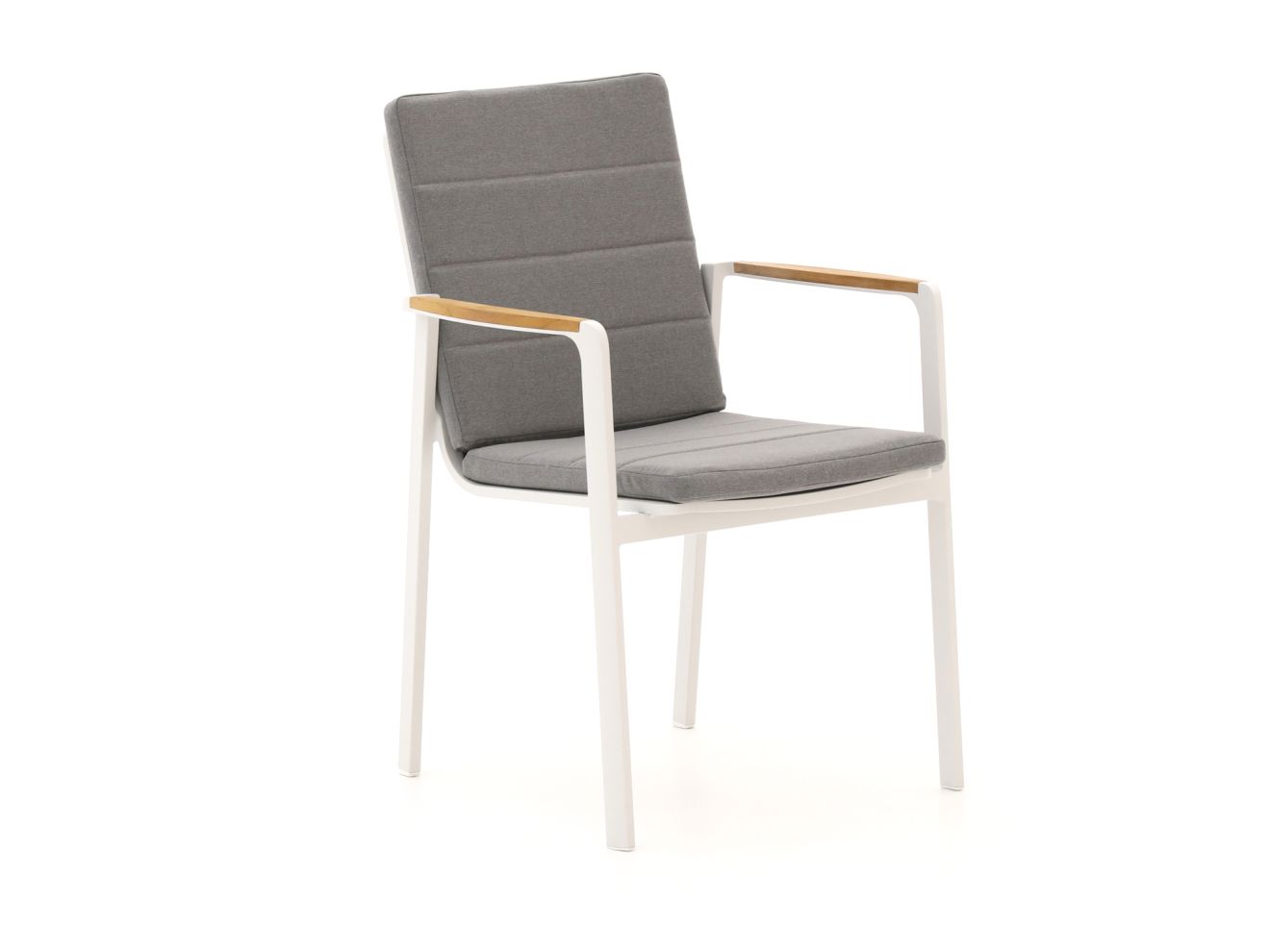 - Nein, dieser Gartenstuhl verzichtet auf Armlehnen, um das Stapeln zu erleichtern und ein modernes, schlankes Design zu gewährleisten.