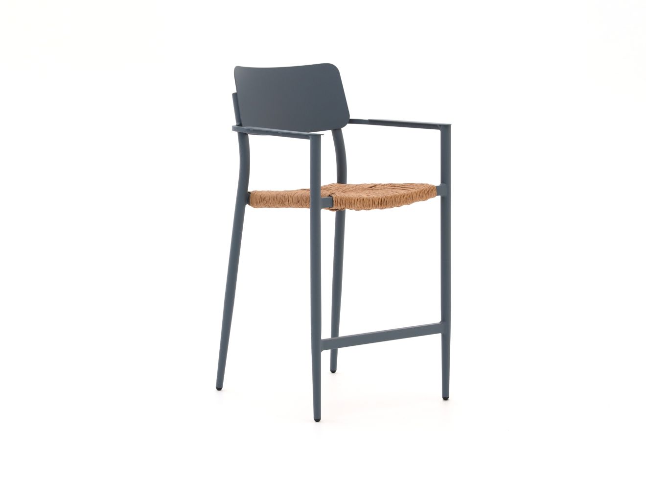 Der Hocker besteht aus einem wetterfesten Polyrattan-Geflecht kombiniert mit einem robusten Aluminiumgestell, das korrosionsbeständig und leicht ist.