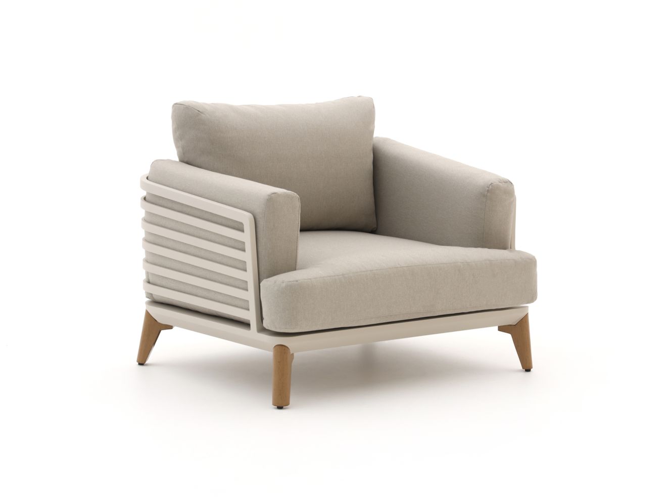 Der Sessel besteht aus einem robusten Aluminiumrahmen und einem hochwertigen Polyrattan-Geflecht, das speziell für den Außenbereich entwickelt wurde. Die Sitzpolster sind wasserabweisend und leicht zu reinigen.