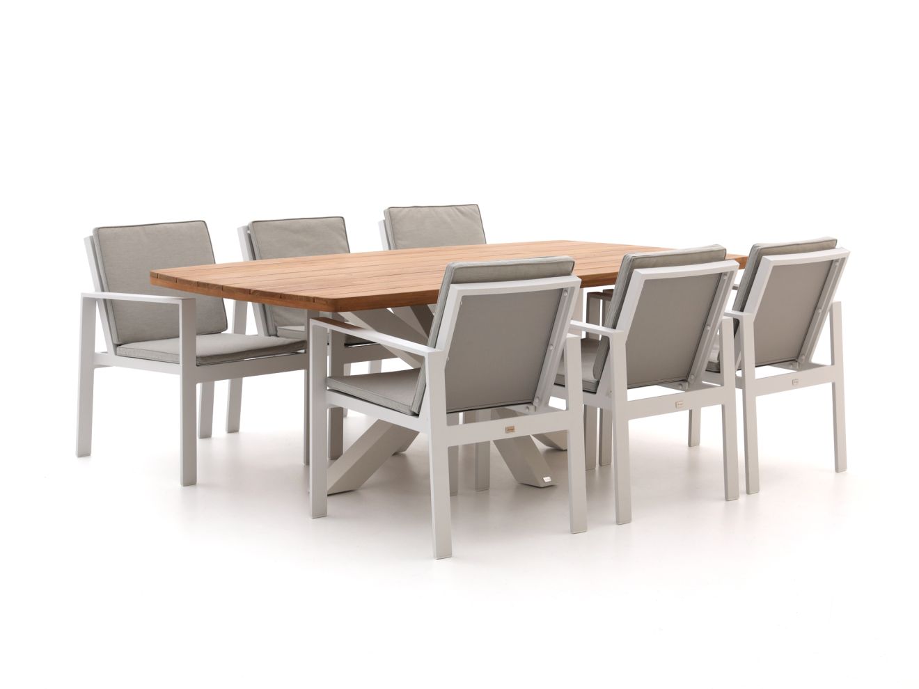 Das Bellagio Vezzano/Induno Dänisch oval 220 cm Gartenmöbel-Set 7-teilig ist die perfekte Wahl für stilbewusste Gartenliebhaber, die Komfort und Eleganz in einem möchten. Dieses exklusive Set besteht aus einem großen ovalen Tisch mit einer Länge von 220 cm sowie sechs passenden Stühlen, die durch ihr skandinavisch inspiriertes Design überzeugen. Gefertigt aus hochwertigen Materialien, bietet das Set eine robuste und wetterbeständige Oberfläche und eine angenehme Sitzqualität.