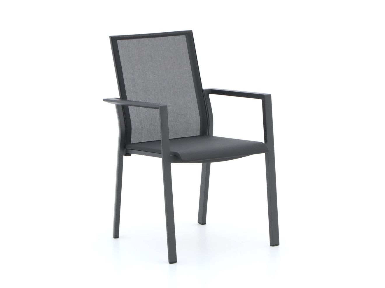 Der Stuhl verfügt über ein pulverbeschichtetes Aluminiumgestell kombiniert mit einer Sitzfläche aus wetterfestem Kunststoffgeflecht. Diese Materialien gewährleisten Stabilität, Langlebigkeit und Witterungsbeständigkeit.