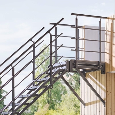 Ja, dank des robusten Materials und der wetterbeständigen Anthrazit-Beschichtung ist die Treppe auch im Outdoor-Bereich einsetzbar. Dennoch sollte sie vor extremen Witterungen geschützt werden.