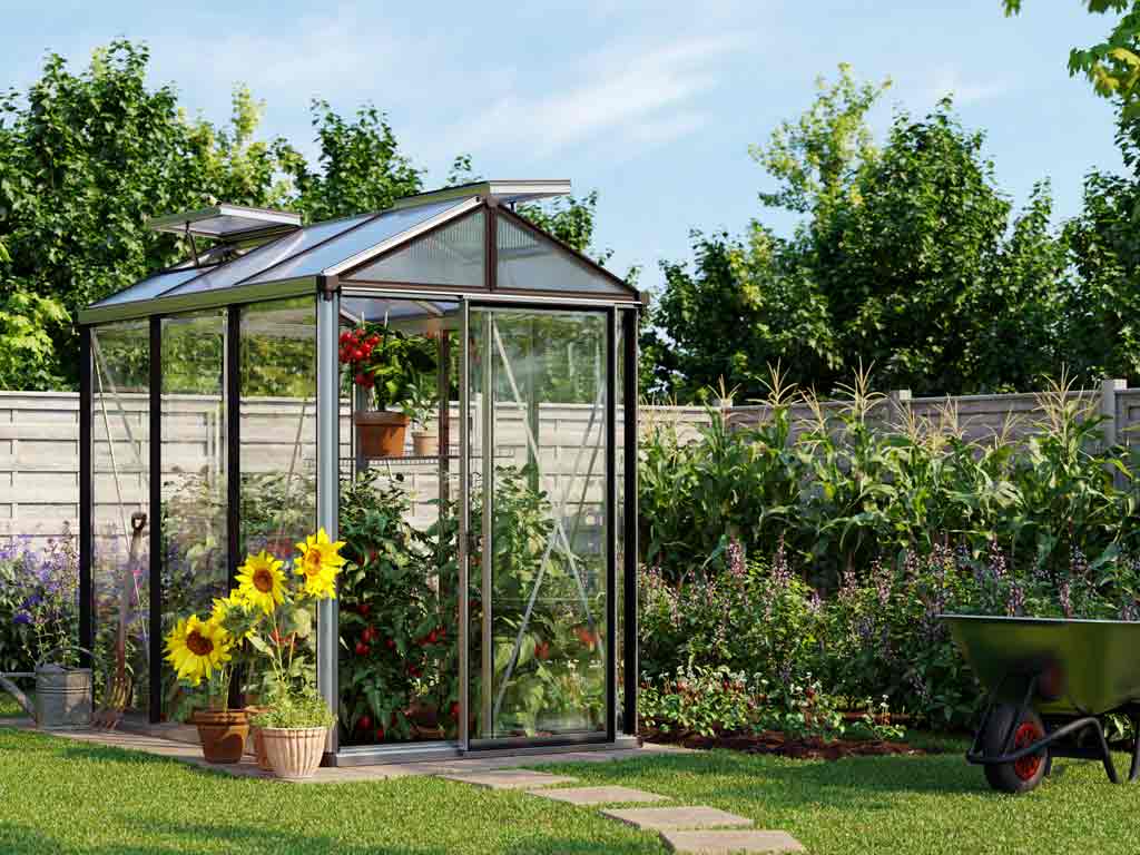 - Wie sieht es mit der Pflege aus? Die Pflege des Gewächshauses ist unkompliziert; regelmäßige Reinigung der Glasflächen und Checks der Belüftungssysteme sind empfohlen.