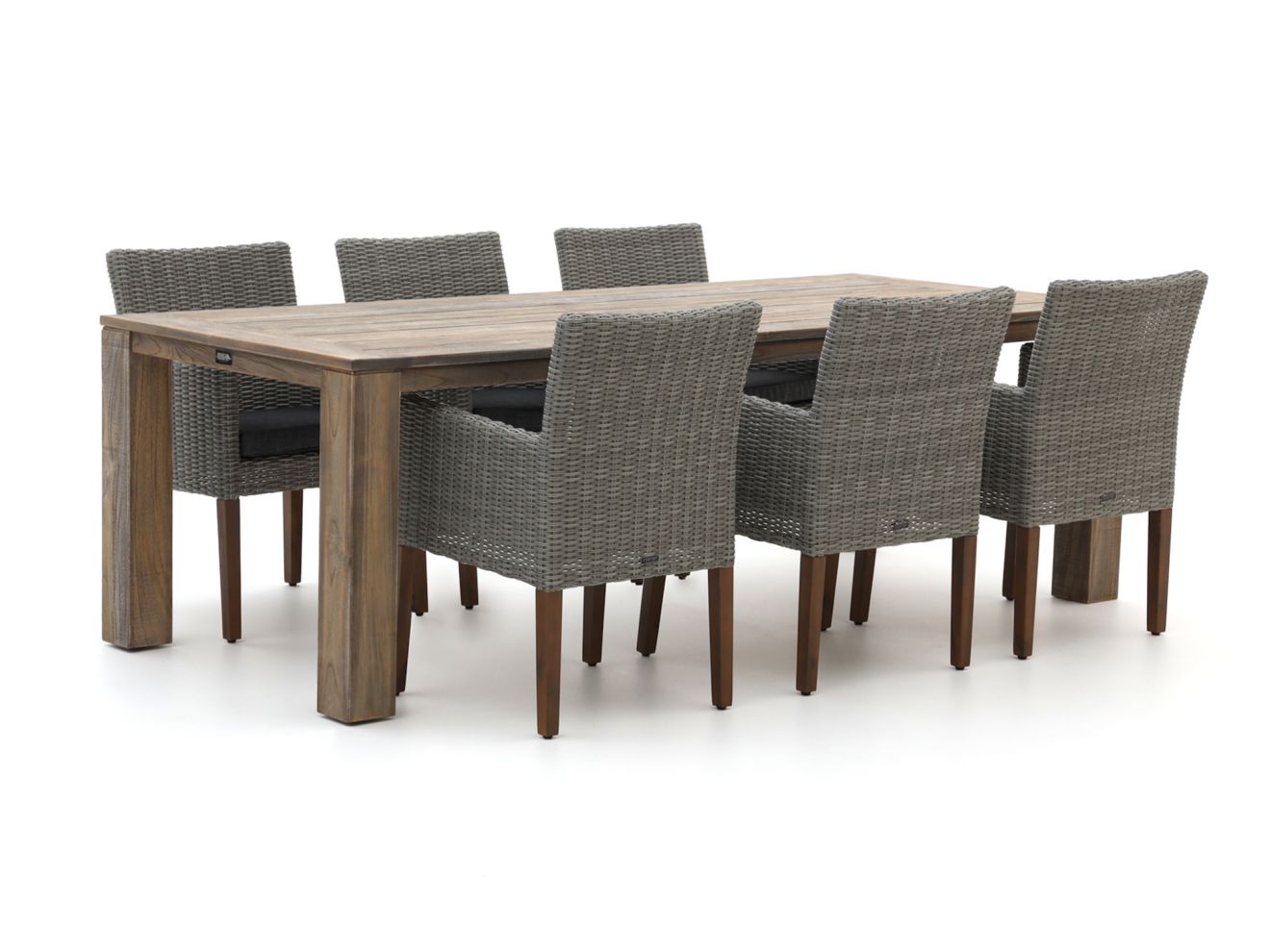 - Das Set bietet Platz für sechs Personen mit sechs Sesseln und einem großzügigen 240 cm langen Tisch – ideal für Familien oder kleine Gruppen.