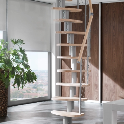 - Standardmäßig ist die Treppe in Buche und Eiche erhältlich. Optional sind auch andere Holzarten oder Oberflächenbehandlungen erhältlich, um individuell auf den Raum abgestimmt werden zu können.