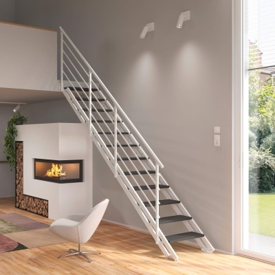 - Die Treppe ist in verschiedenen Farben und Oberflächen erhältlich, um sich optimal in die Raumgestaltung einzufügen.